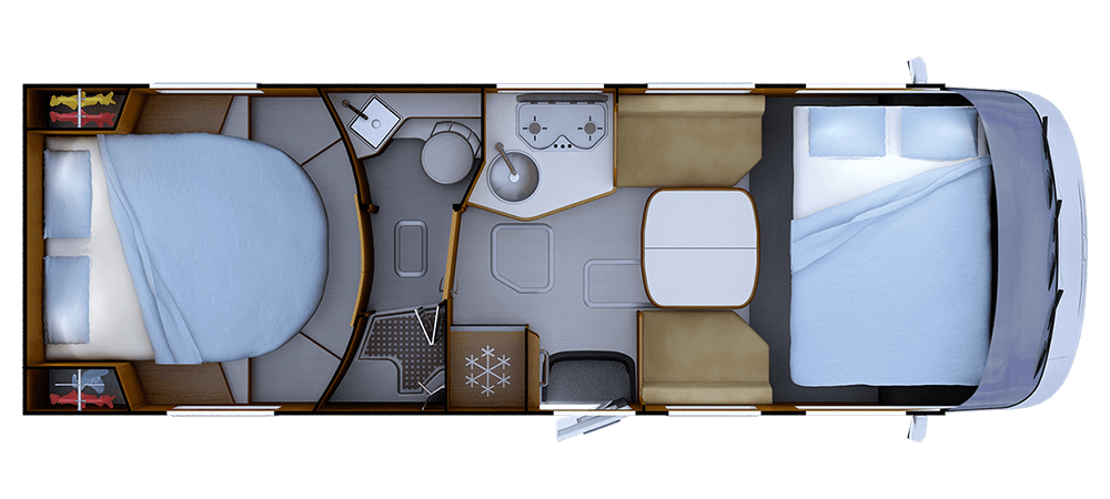 • Design-Bettseiten mit offenen Ablagefächern und 12 V-Steckdose