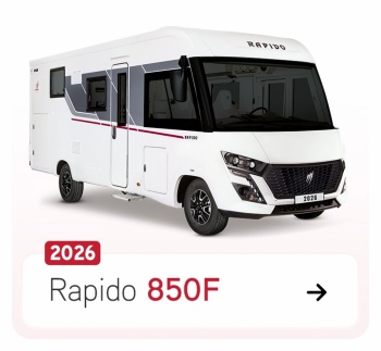 Entdecken Sie unsere Baureihen 8F und 80dF, die außen wie innen vollständig neu gestaltet wurden. Ergänzend bietet die Baureihe 8F ein brandneues Modell, den 850F: Dieses kompakte Fahrzeug (6,99 m) überzeugt mit einem großzügigen Queensbett und einer einladenden L-Sitzgruppe.